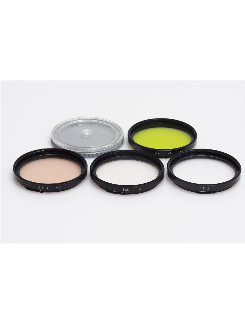 Four different filters (Yellow Green 2x YG -1, Color Correction Red 1x CR3 -0, Diffuser DF2 , Haze 1x HZ -0), with caps