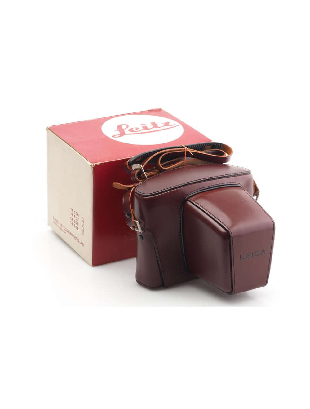 Maker's box with signs of use, for Leicaflex SL2 with 2.8/16 2.8/28 2.8/35 1.4/50 2.8/60(without adapter) 2.8/90 2/90(with hood) 4/21 2.8/24 2/35mm lens.