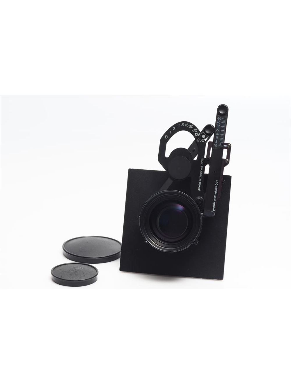 in near mint condition with clean lenses, Prontor Professional 1S shutter with aperture and time setting devices and both caps on Sinar lens board
